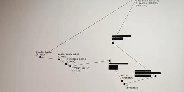Prominent visual cues evoke a state of uneasy in-betweenness. Daisuke Igarashi’s illustration of a pink rose springing from skull-strewn rubble—the key visual of this edition of the Aichi Triennale—suggests a despoiled yet salvageable environment, and an artwork displayed in the tenth-floor entrance of the main venue, the Aichi Arts Center, envelops us in one. Crocheted by women in Yogyakarta, Indonesia, Mulyana’s fabric installation Between Currents and Bloom (2019–present) features corals, mar...
